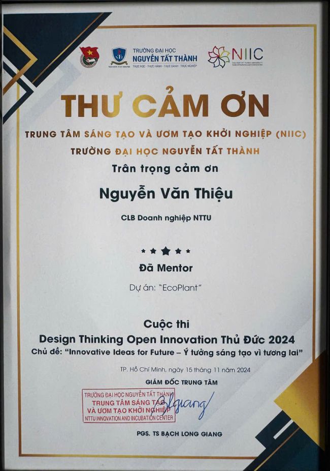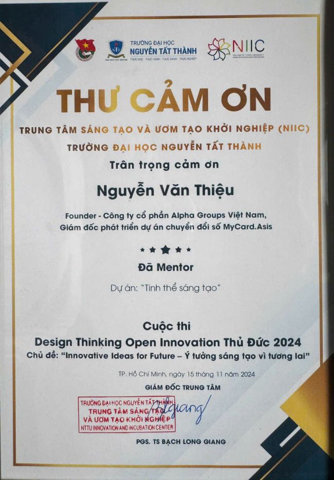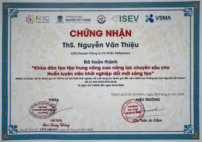 Chứng nhận Cố vấn Dự án Khởi nghiệp Đổi mới Sáng tạo (Nâng cao) – Trường ĐH Nguyễn Tất Thành