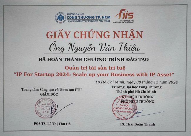 Chứng nhận Quản trị Tài sản Trí tuệ – IP for Startup 2024 – Trường ĐH Công Thương TP.HCM