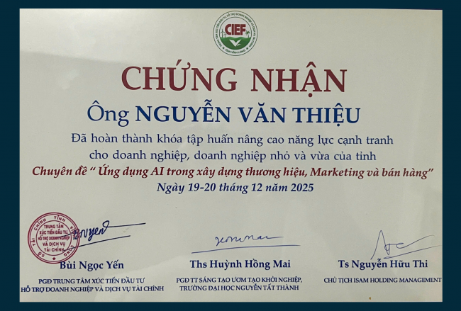 Tôi là Nguyễn Thiệu, Thạc sĩ Quản trị Kinh doanh với hơn 10 năm kinh nghiệm thực tiễn trong lĩnh vực quản lý doanh nghiệp, xây dựng chiến lược kinh doanh – marketing và tư vấn chuyển đổi số.